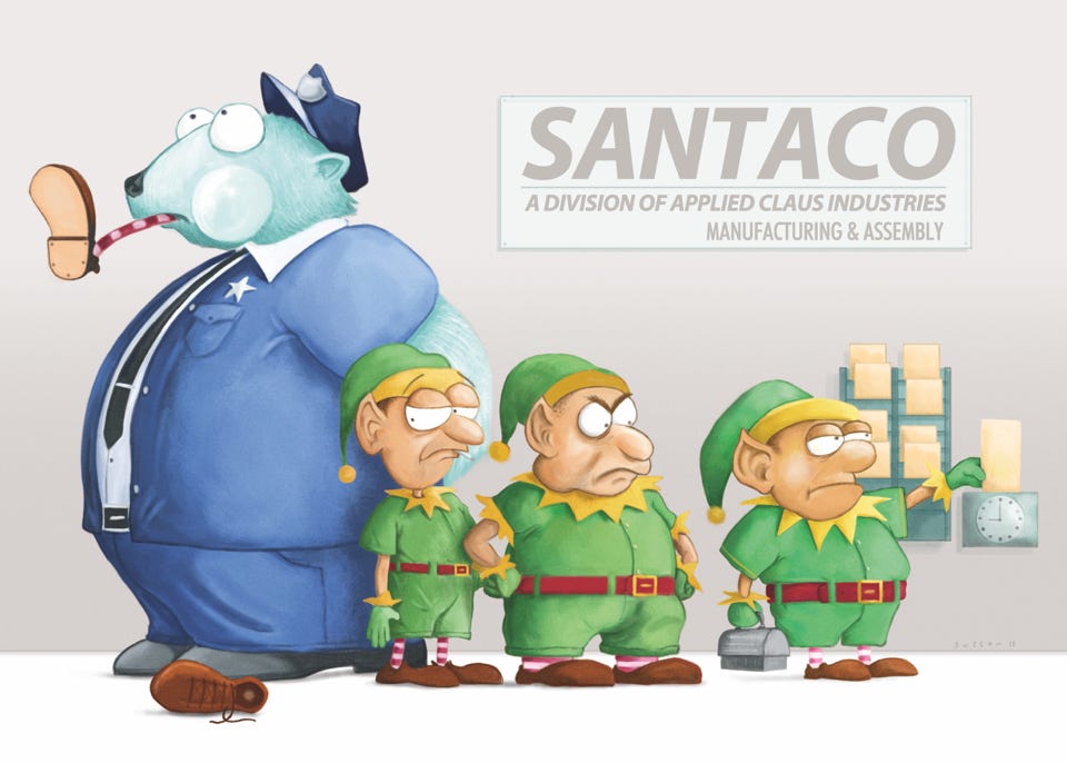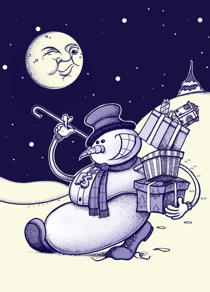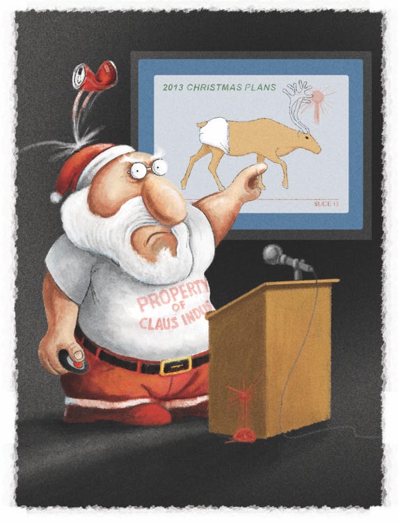 Selected self-published Christmas card art created over the years.